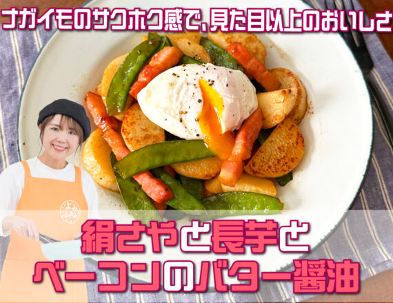 山本ゆりさんのレシピ「絹さやと長芋とベーコンのバター醤油」