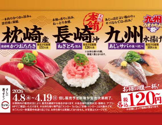 九州のうまいネタがスシローに大集結!「九州うまかもん祭」が2026年4月8日(水)から19日(日)まで開催...