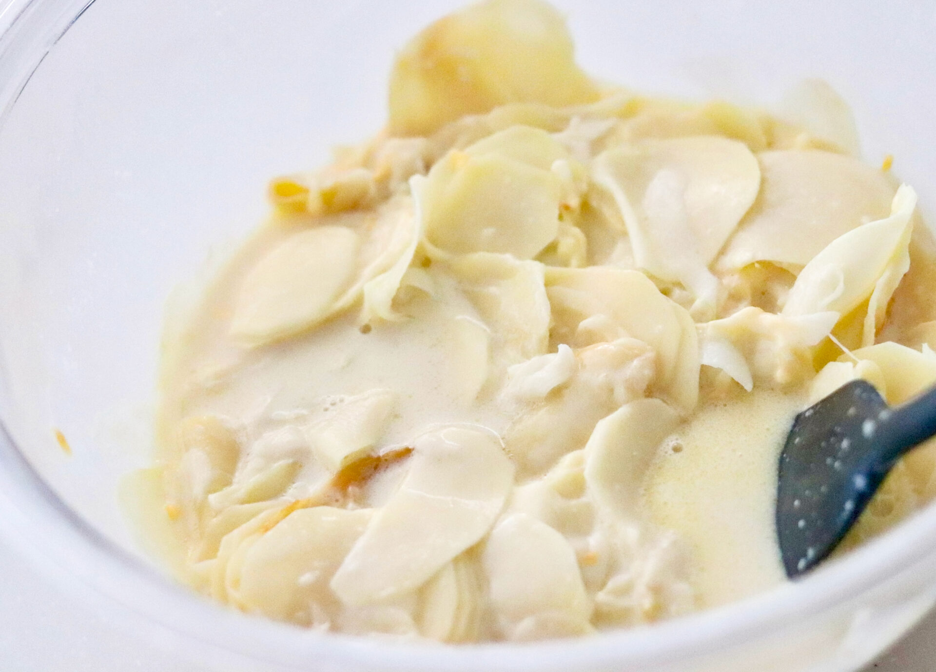 フライパンを使わずに作れる簡単なポテトグラタン。