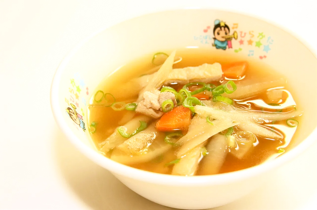 ごぼうとおからが入ったすまし汁で、腸活にも良さそう✨