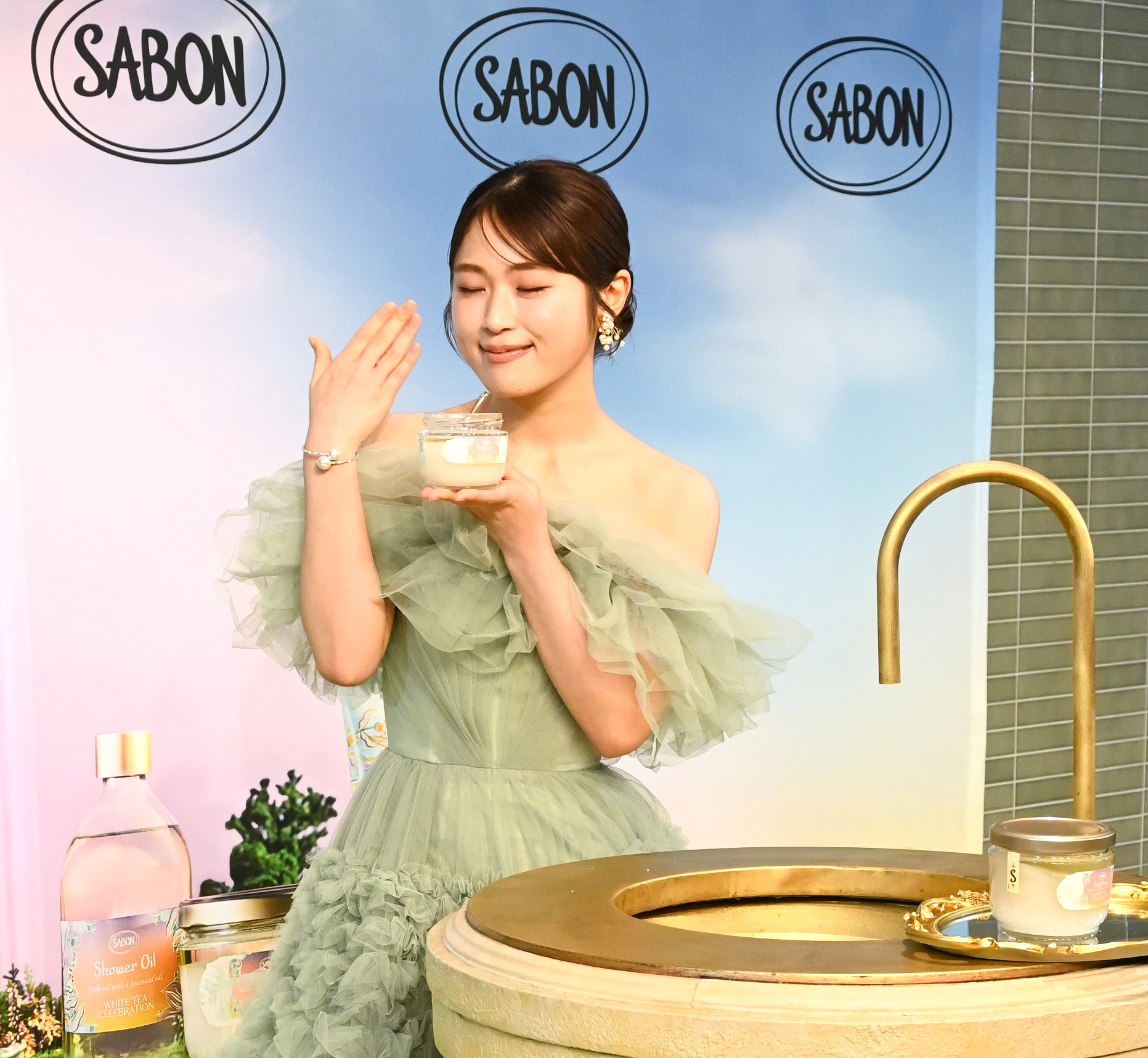 そんな凪咲さんが、ナチュラルコスメブランド「SABON(サボン)」の「White Tea Celebration」POP UP SHOPの開催イベントで来阪。