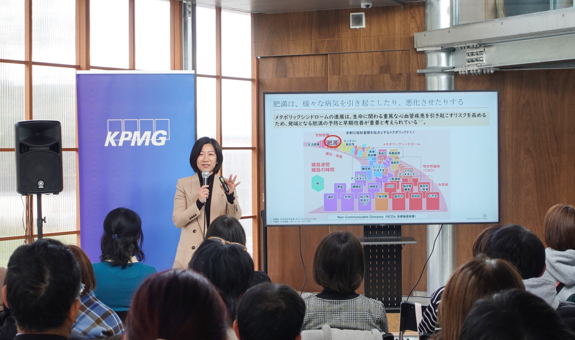 続いて、日本イーライリリー(本社・神戸市中央区)研究開発・メディカルアフェアーズ統括本部のチーフメディカルオフィサーで医師の坂口佐知さんが「肥満と肥満症の違い」について解説。