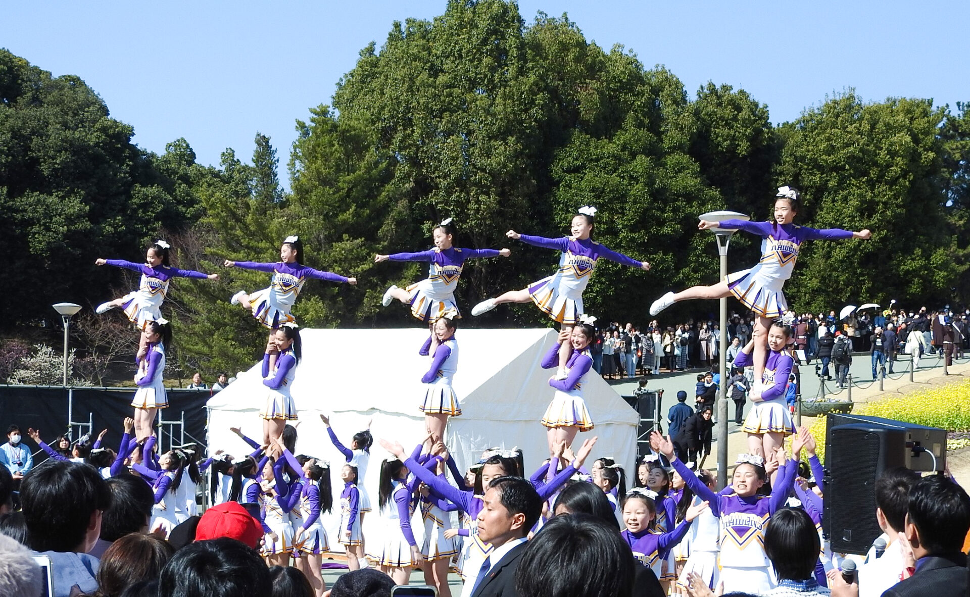式典のクライマックスには、梅花中学校・高等学校チアリーディング部「RAIDERS」のパフォーマンス。