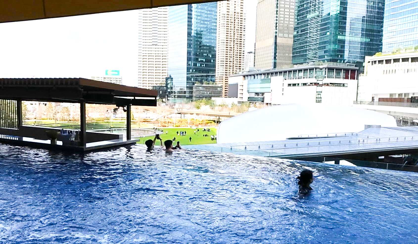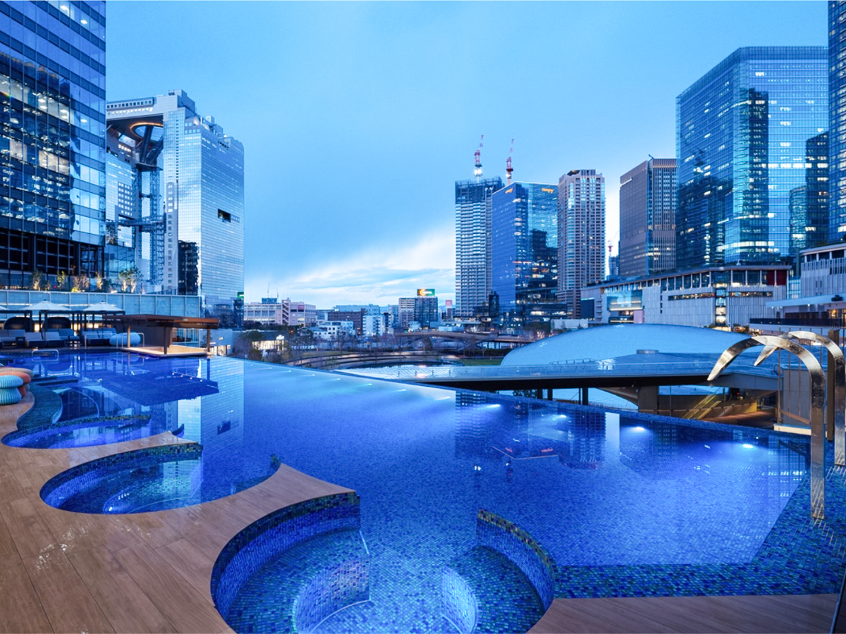 ・まるでマリーナベイサンズ!?都会の真ん中の屋外温水インフィニティプール