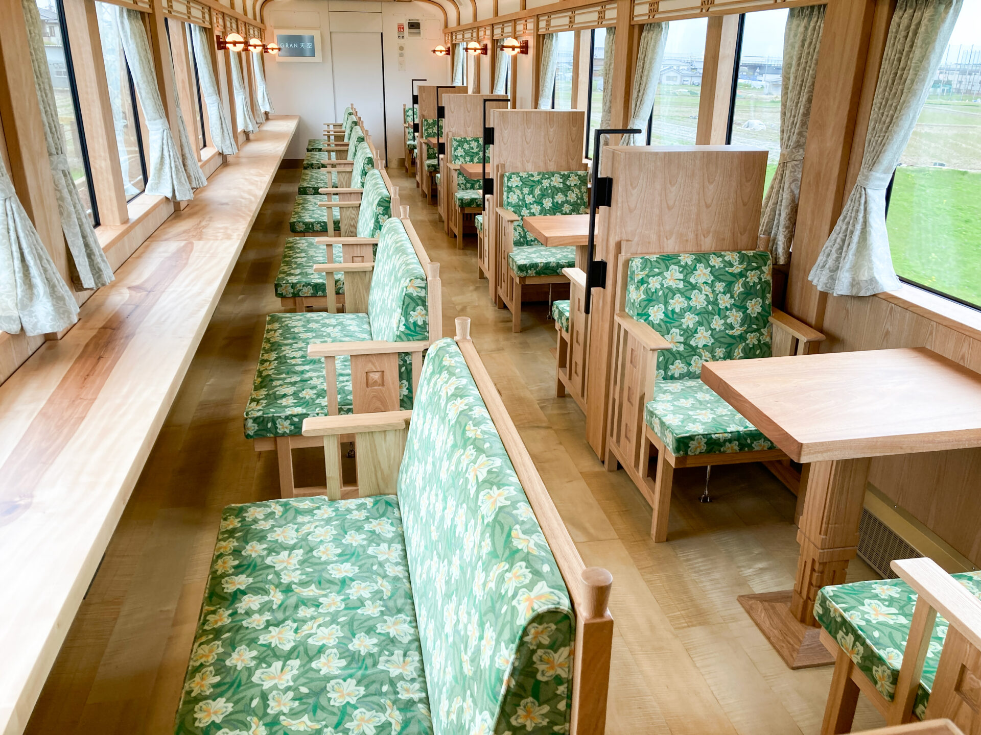 「リラックスシート」と呼ばれる1号車は、全席が進行方向に向いて並びます。