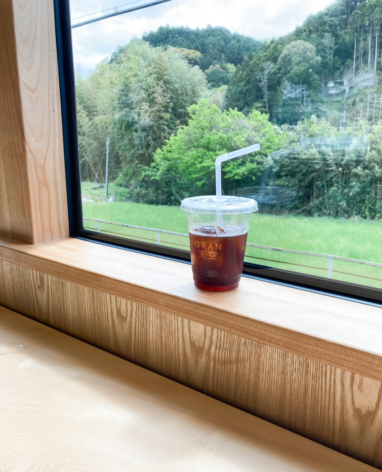 3号車で早速、アイスコーヒーを買って、2号車の窓に面した座席でのどを潤します。