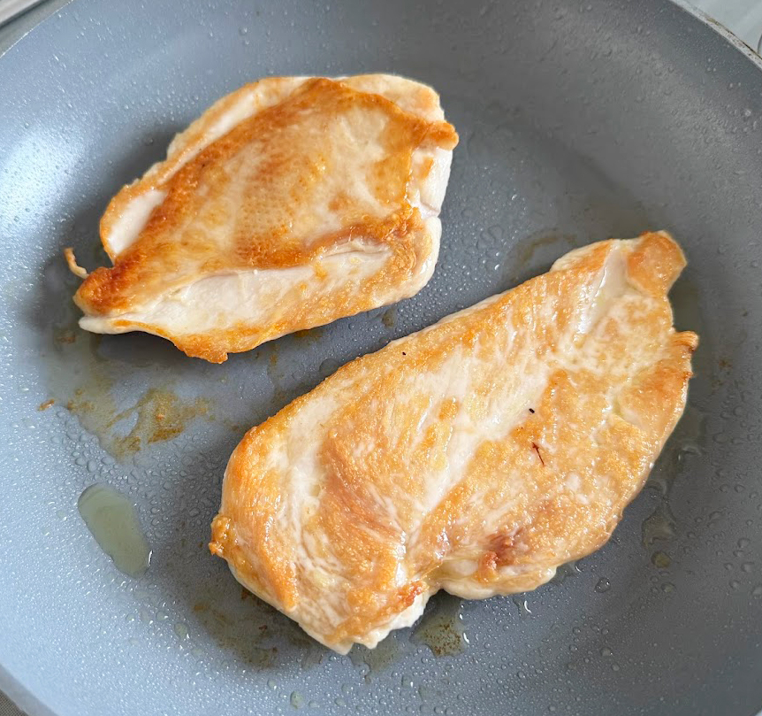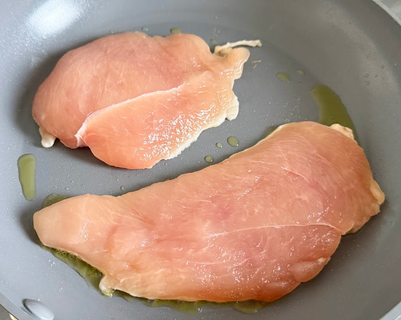 淡白な味の鶏胸肉は厚みを半分にしてからソテーするので中まで火が通りやすくなります。