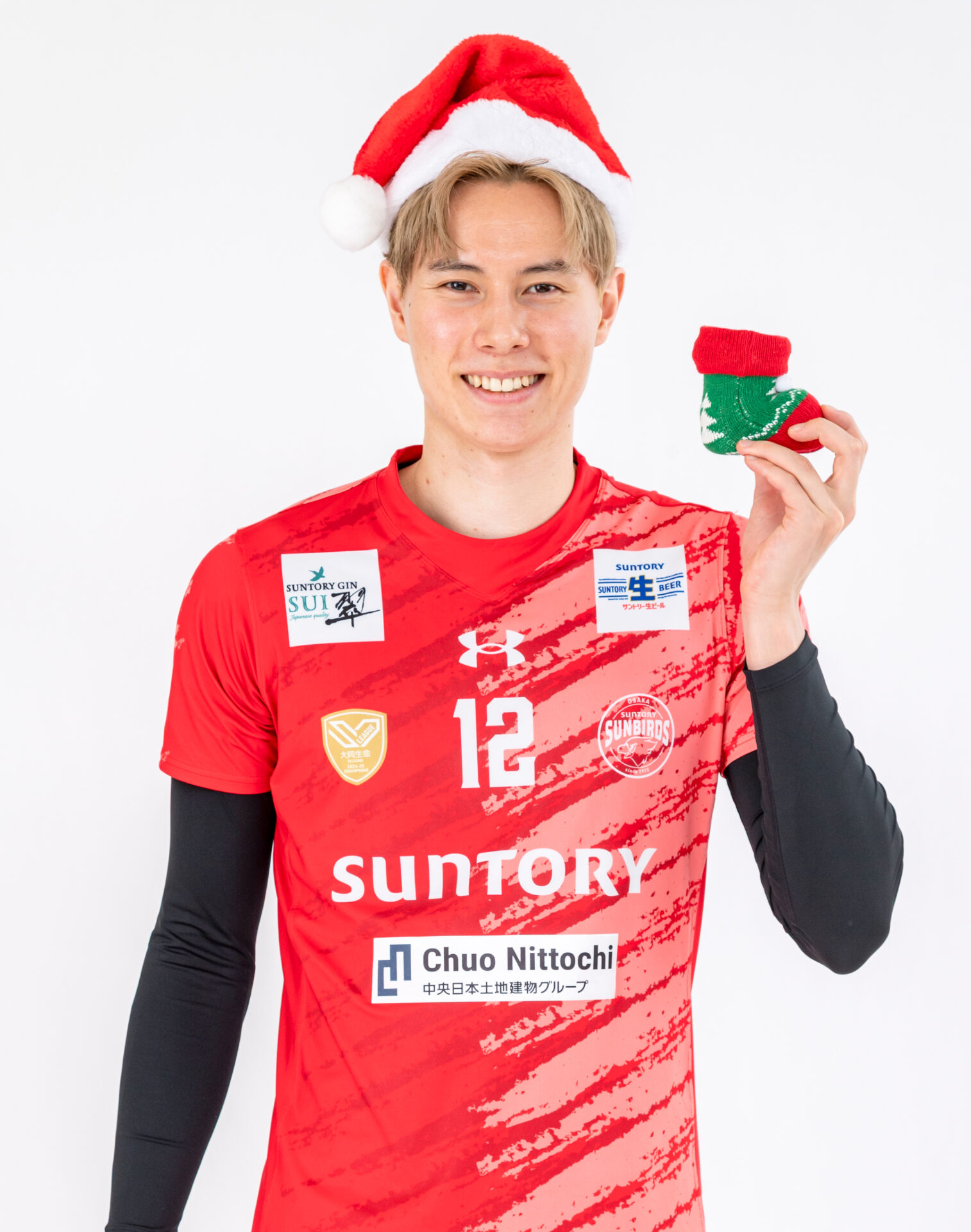 ユニフォーム姿にサンタ帽をかぶったクリスマスバージョンの装いでご登場いただきました🎅