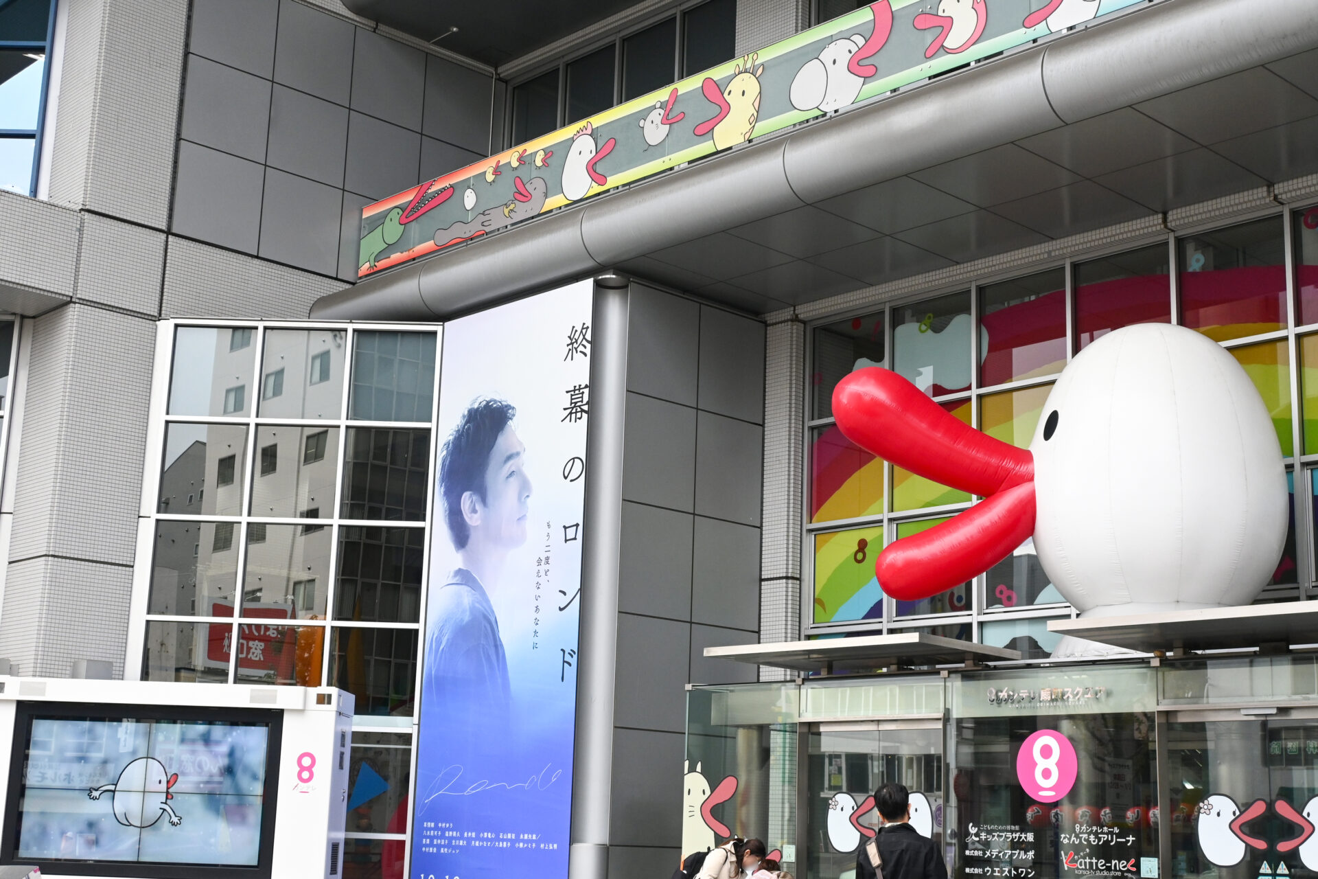 ハチエモンの横には今回取材させていただく「終幕のロンド」の大きなポスターが❗