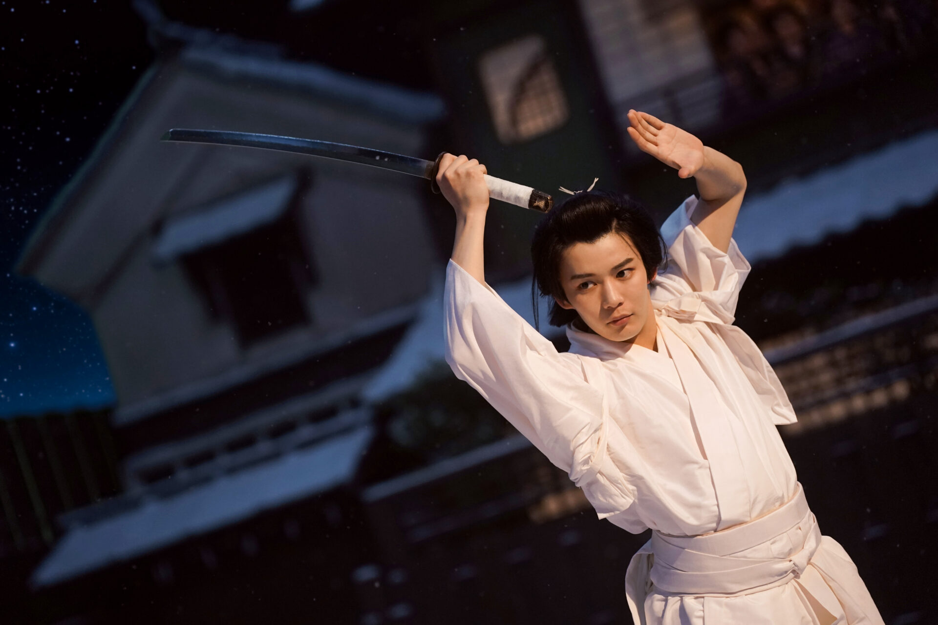 美青年の剣士・伊納菊之助役の長尾謙杜さんや