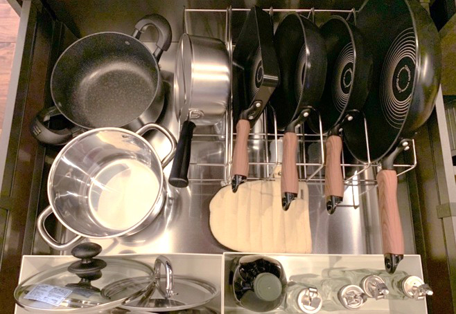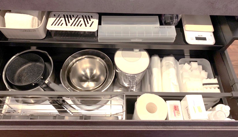 調理の動きを止めることなく、サッとモノを使い、材料を管理し、家事の時短へとつながります!
