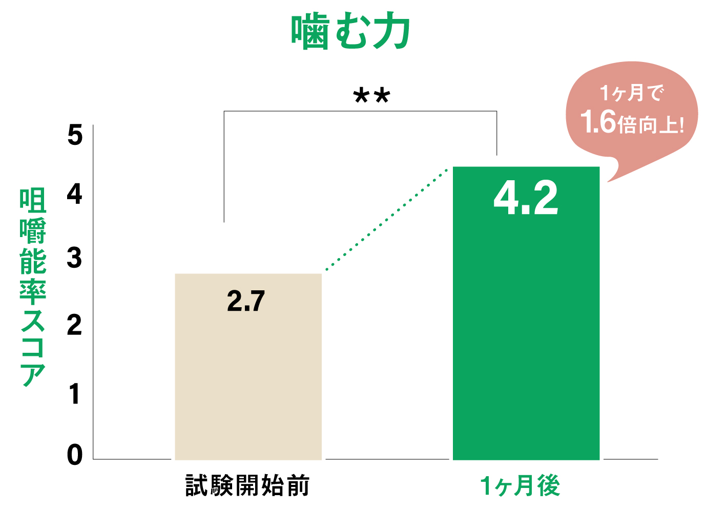 4週間グミ(2枚/日)を噛み続けることによる噛む力の変化と効果実感