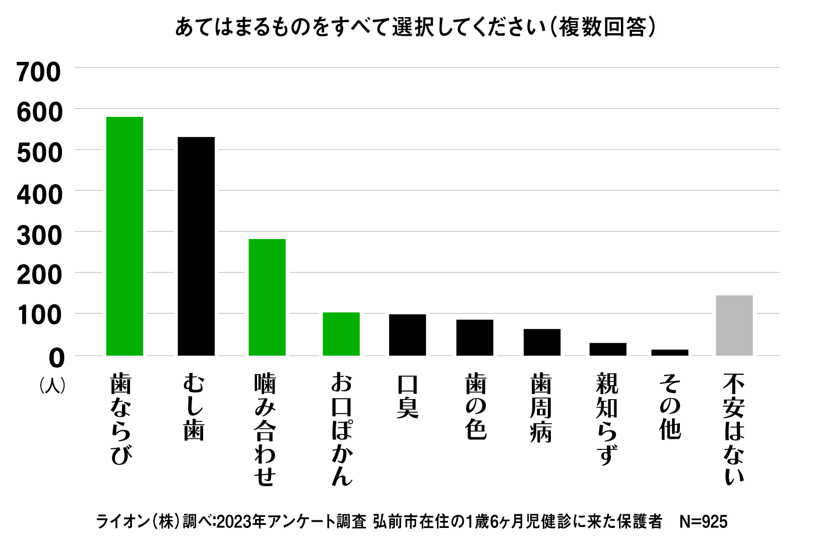 Q. あなたのお子さんの将来のお口について不安に思っていることについて