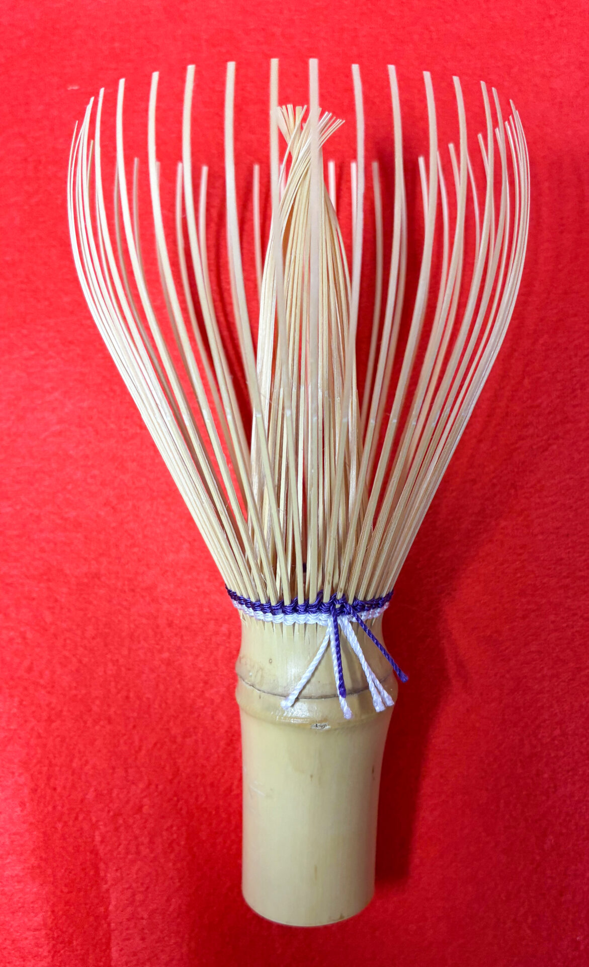 直径が2cmほどの竹の茶筅は、茶碗の中で振ると手首のスナップが利いて扱いやすいのだそうです。