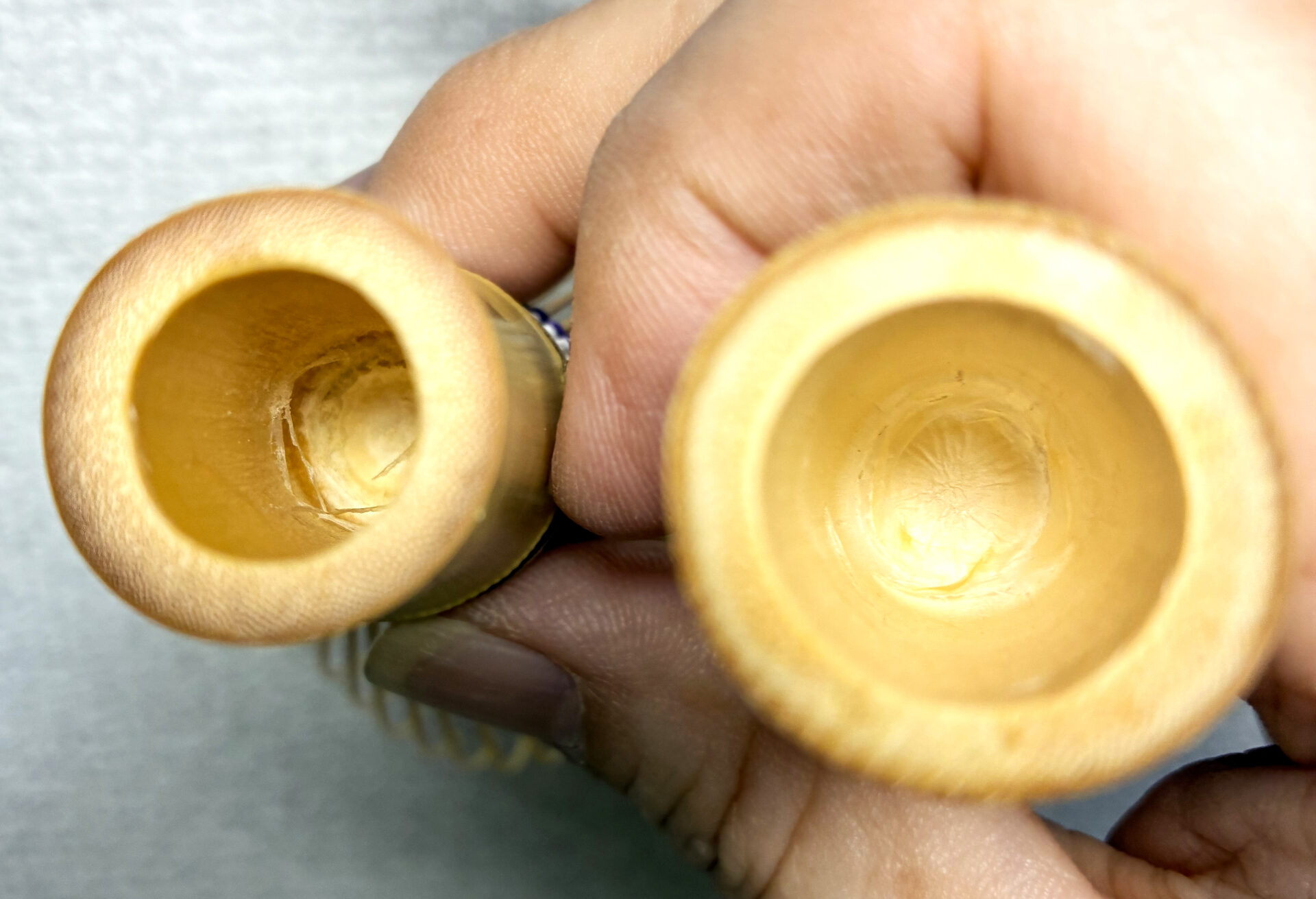 このことで穂先に弾力が生まれ、茶筅を茶碗の中で振ったときに一本一本の穂がムチのようにしなり、きめ細かい泡が可能になったんですって。考えた人すごいですよね😮