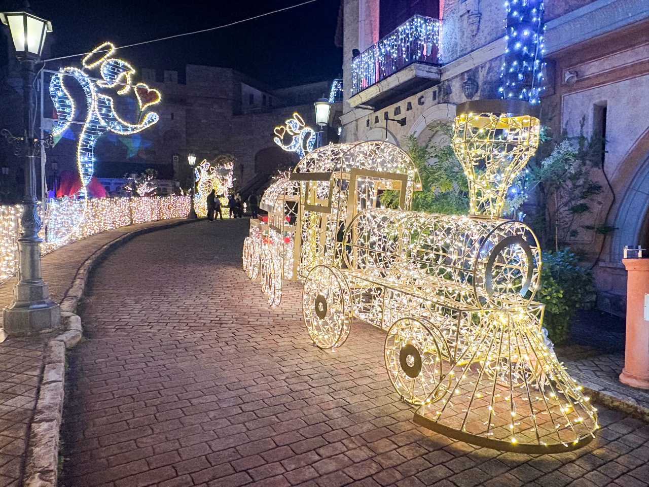 他にも、ライトアップされたヨーロッパの街並みや建物に映し出されるプロジェクションマッピングなど見どころがいっぱい。