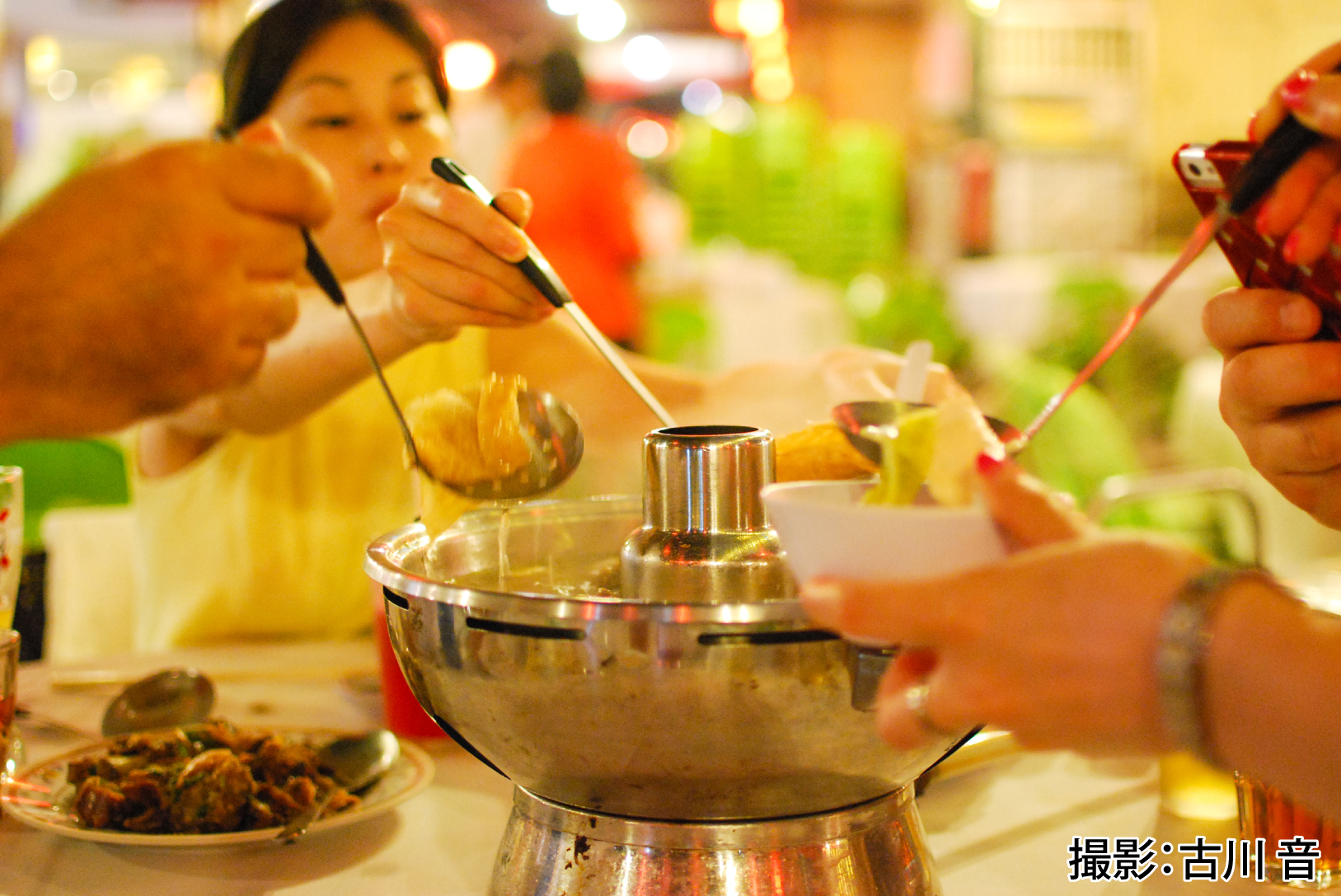 炭火で鍋を炊く店もあるそうで、「暑い中でも熱い物を食べるのは普通」だと話します。