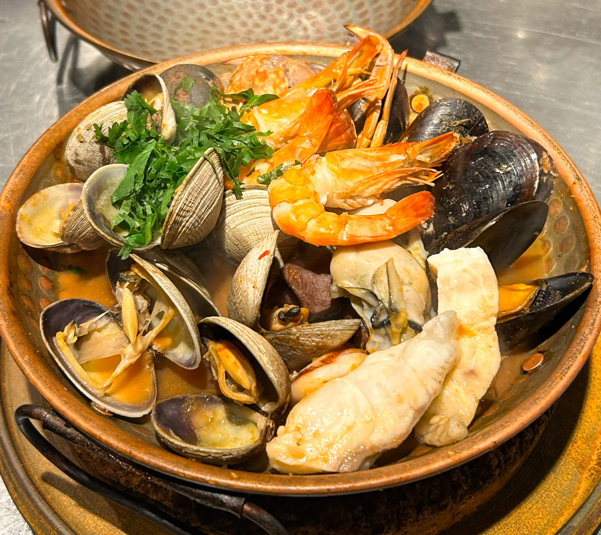 魚介の寄せ鍋「カタプラーナ」は2~3人前で5500円(追加1人前2490円)。