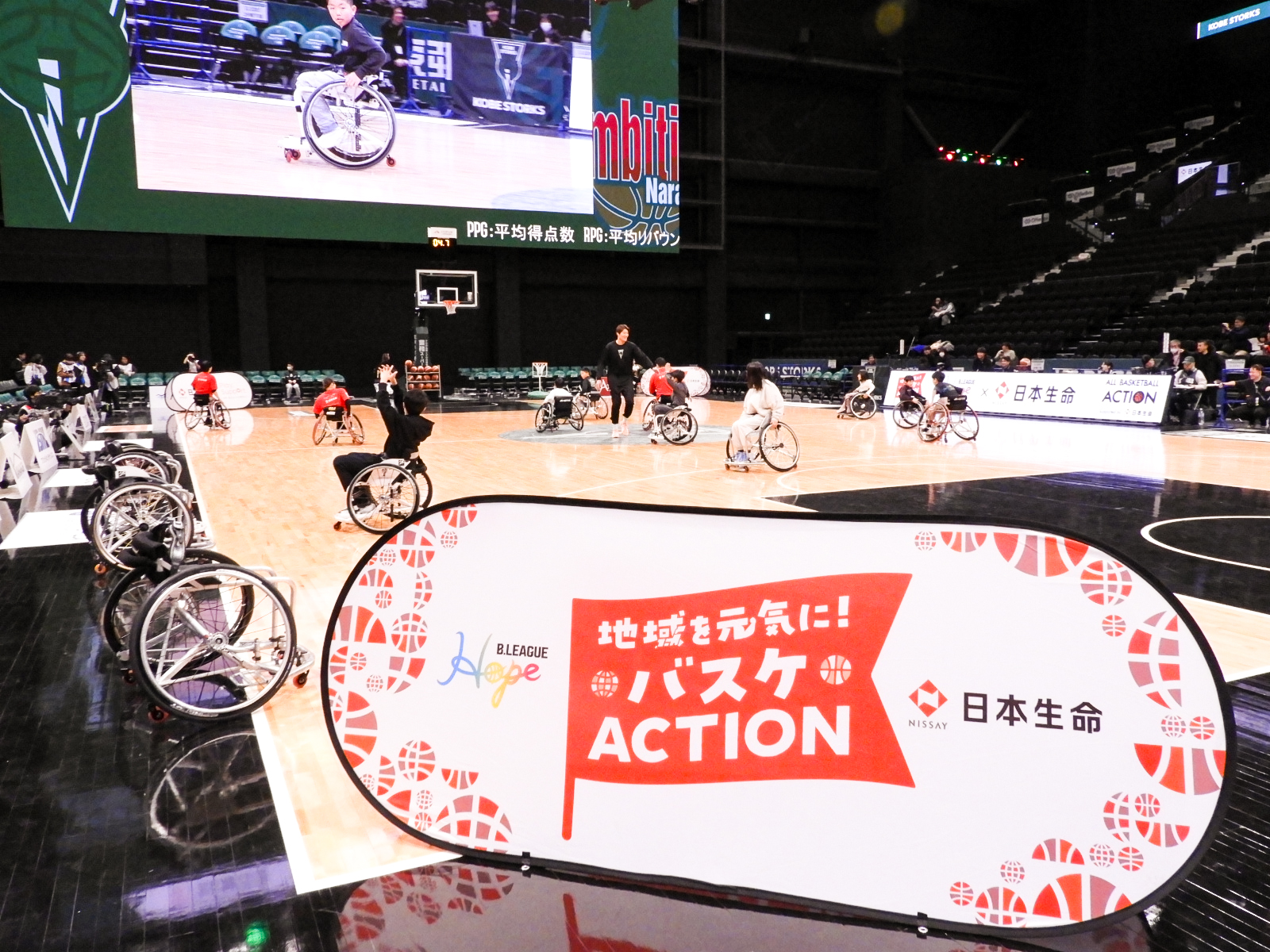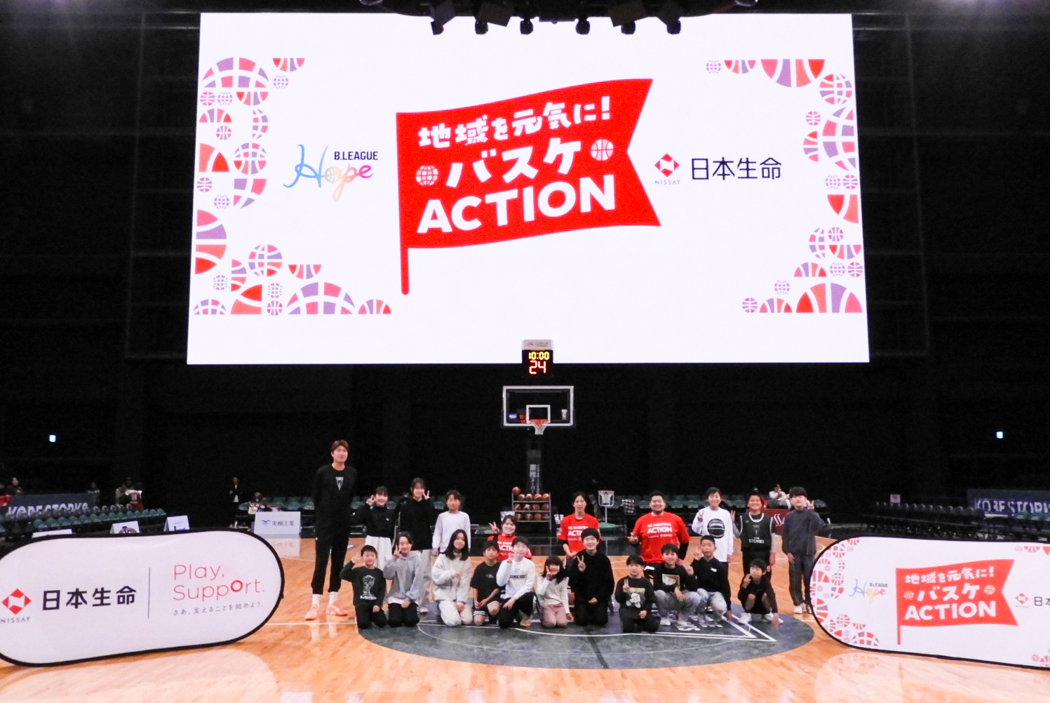 当日の試合の冠パートナー・日本生命相互会社とプロバスケットボール・Bリーグが全国の各クラブと取り組む「地域を元気に!バスケACTION」の一環として実施されました。