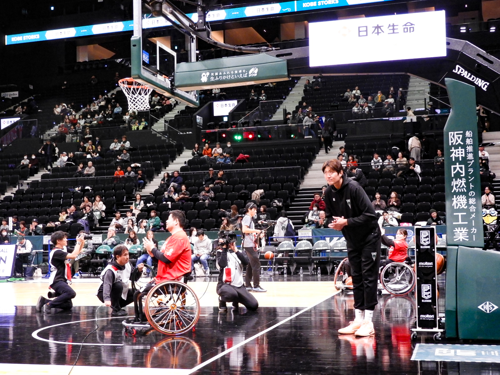そんな車いすバスケットボールを見て、魅力に触れられるイベント「車いすバスケ体験フェス ~この街でともに歩むために~」がBリーグ(B2)神戸ストークスのホームゲーム・バンビシャス奈良戦にあわせ、昨年12月27日(土)にジーライオンアリーナ神戸(神戸市中央区)で開かれました。