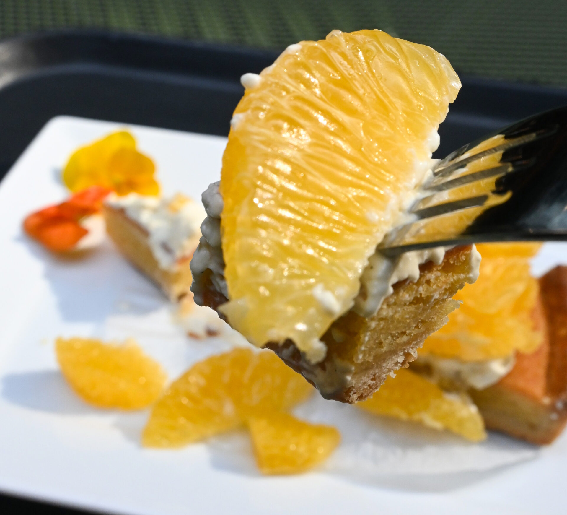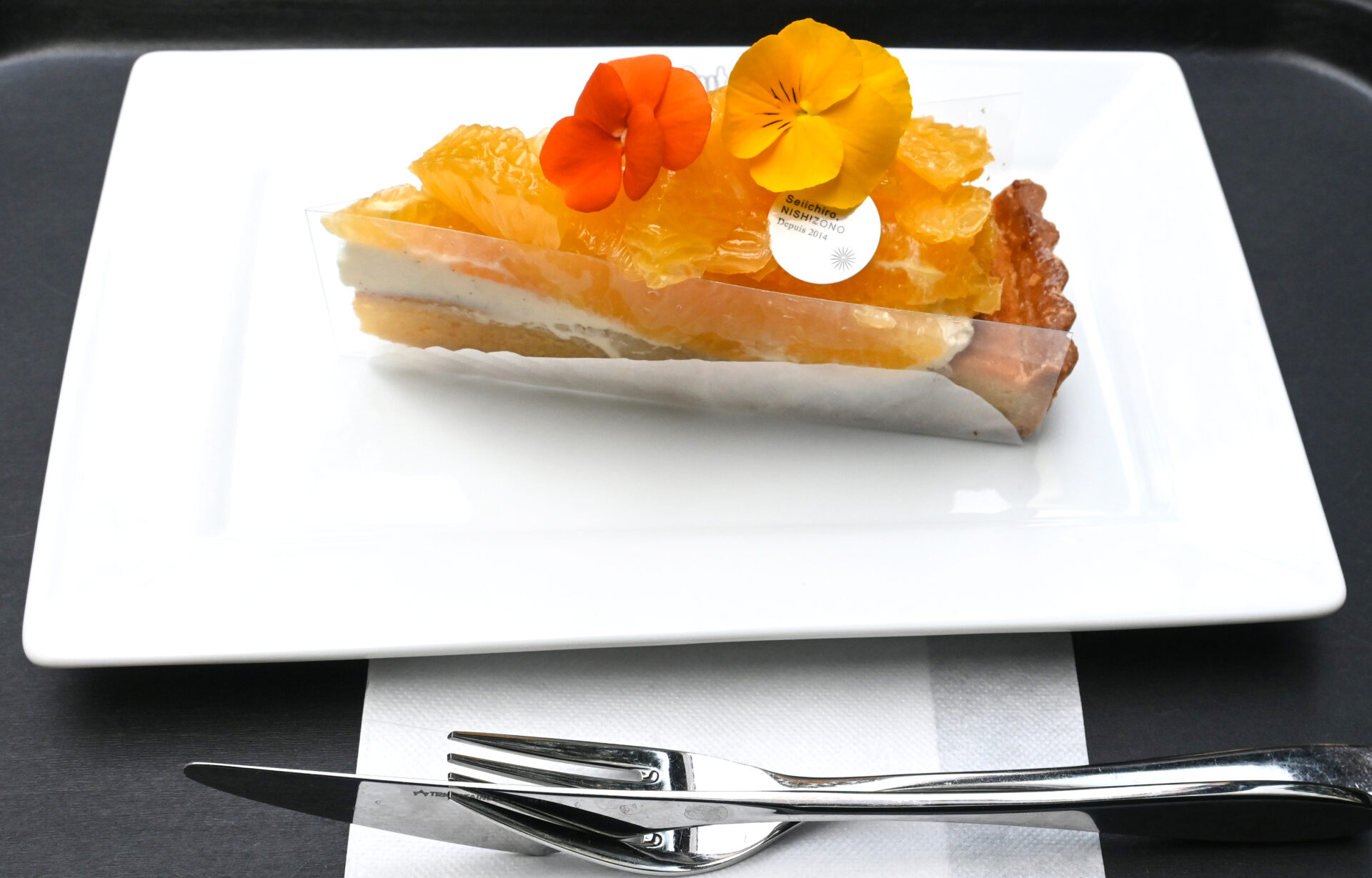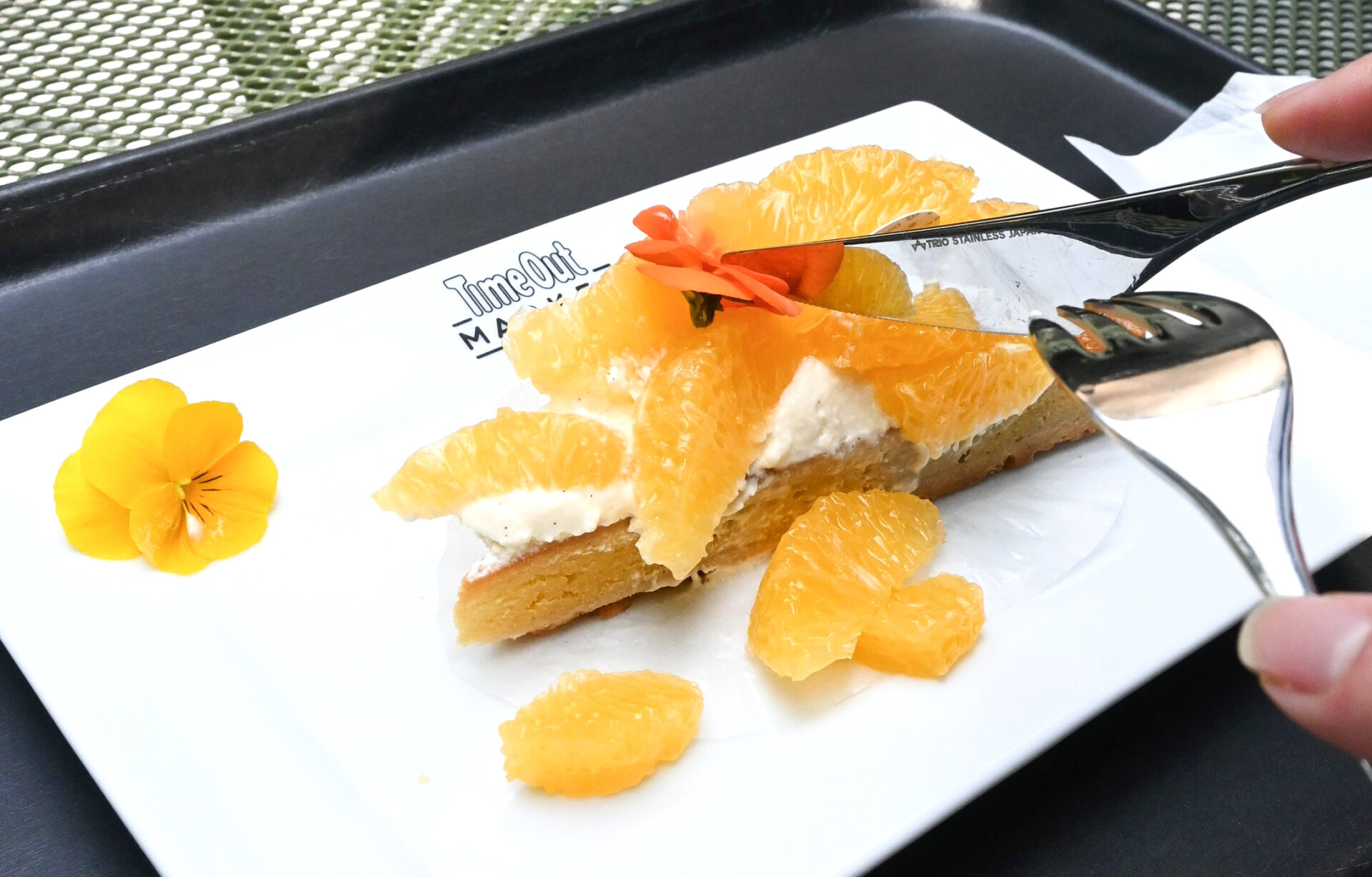 ここは、おしゃれで華やかなパフェが有名なんだけど、今日はフェアの限定メニューの「はっさくのタルト」をいただきます。