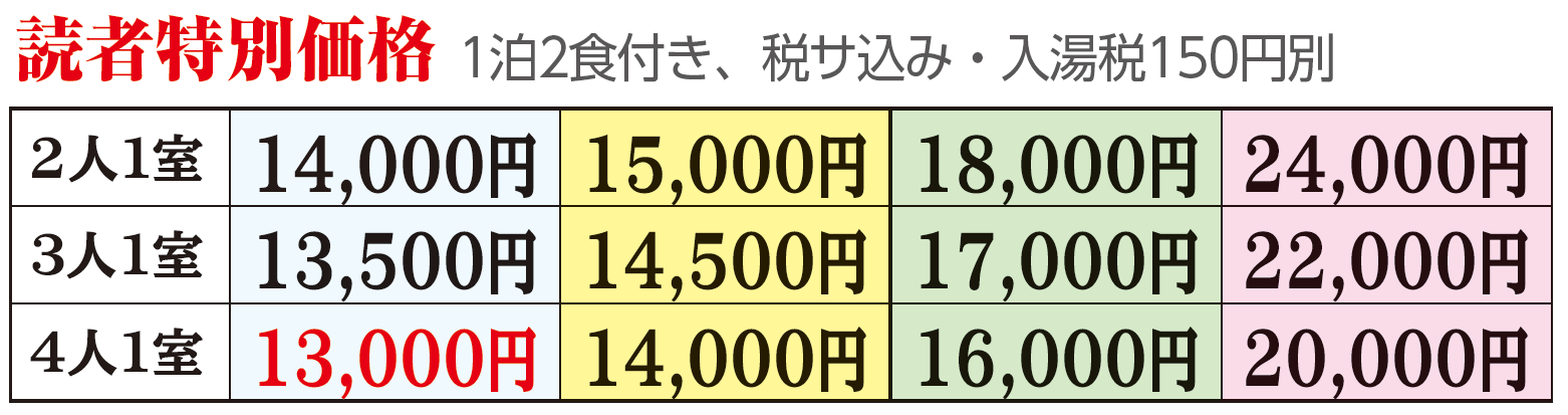 ※特に明記がない場合は、1室大人2人利用時の大人1人の料金です。