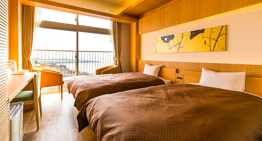 オーシャンビューの和のテイストを盛り込んだ洋室 |