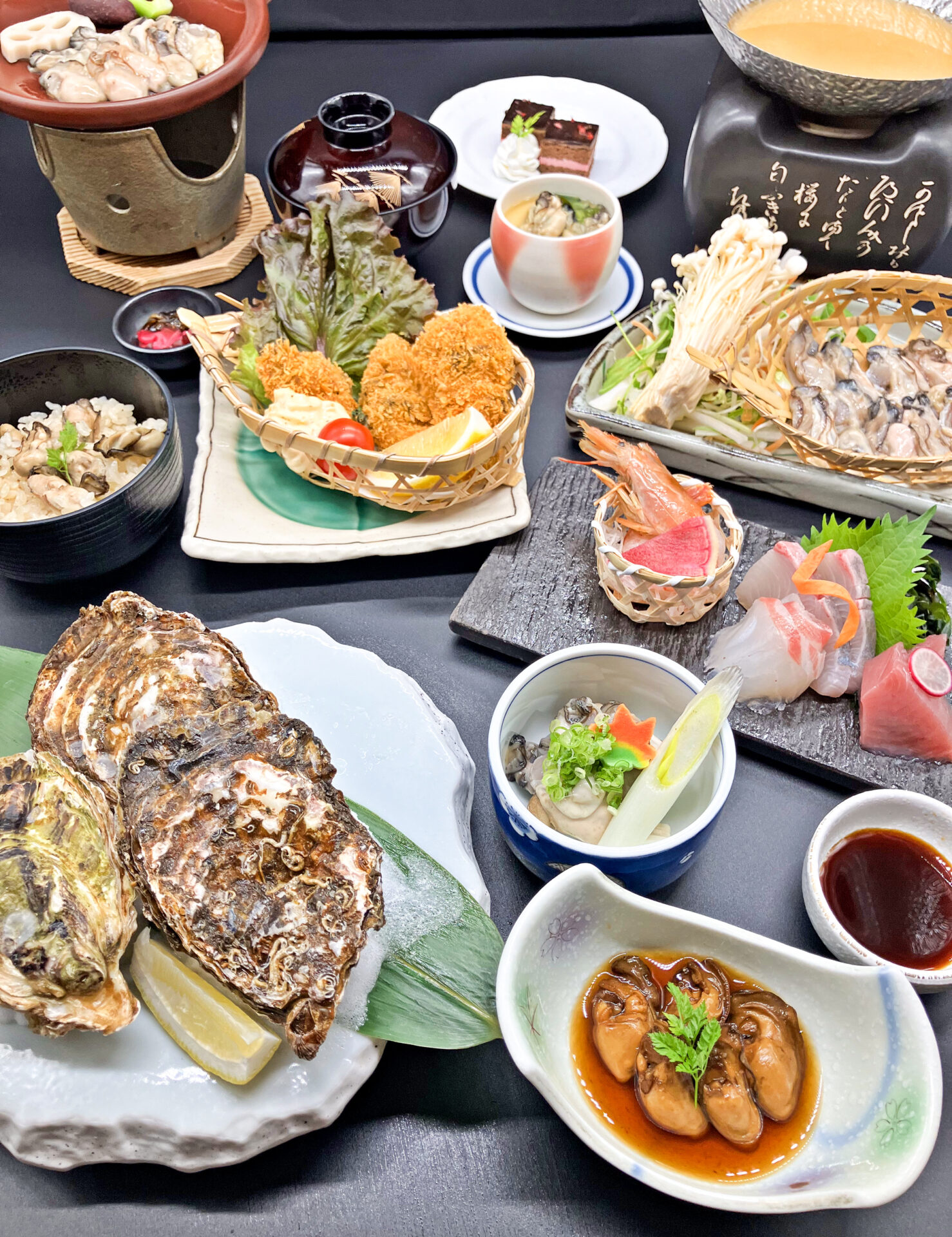 焼き牡蠣・牡蠣フライ・牡蠣陶板焼きなど、様々な調理法で味わえる贅沢な会席です。