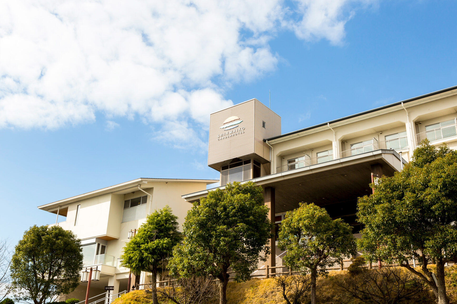 新舞子浜を一望する綾部山の高台に佇み、遠く淡路島や四国まで見渡せる絶好のロケーションが自慢の『新舞子ガーデンホテル』。