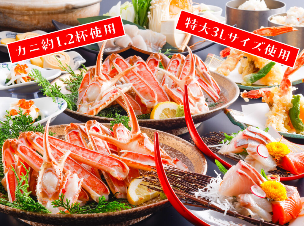 特大3Lサイズの生ガニをお1人様に約2杯使用したプランです❗