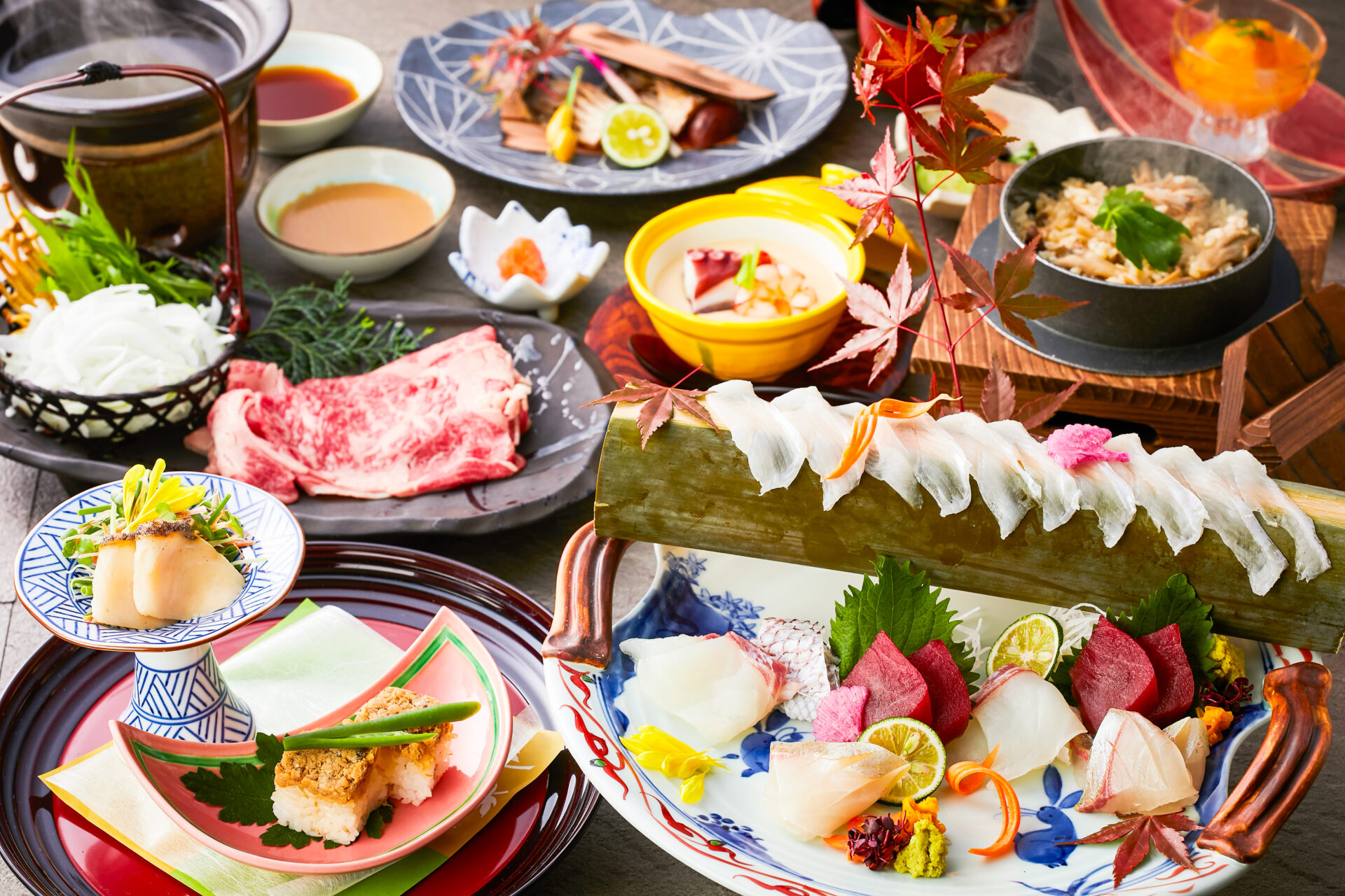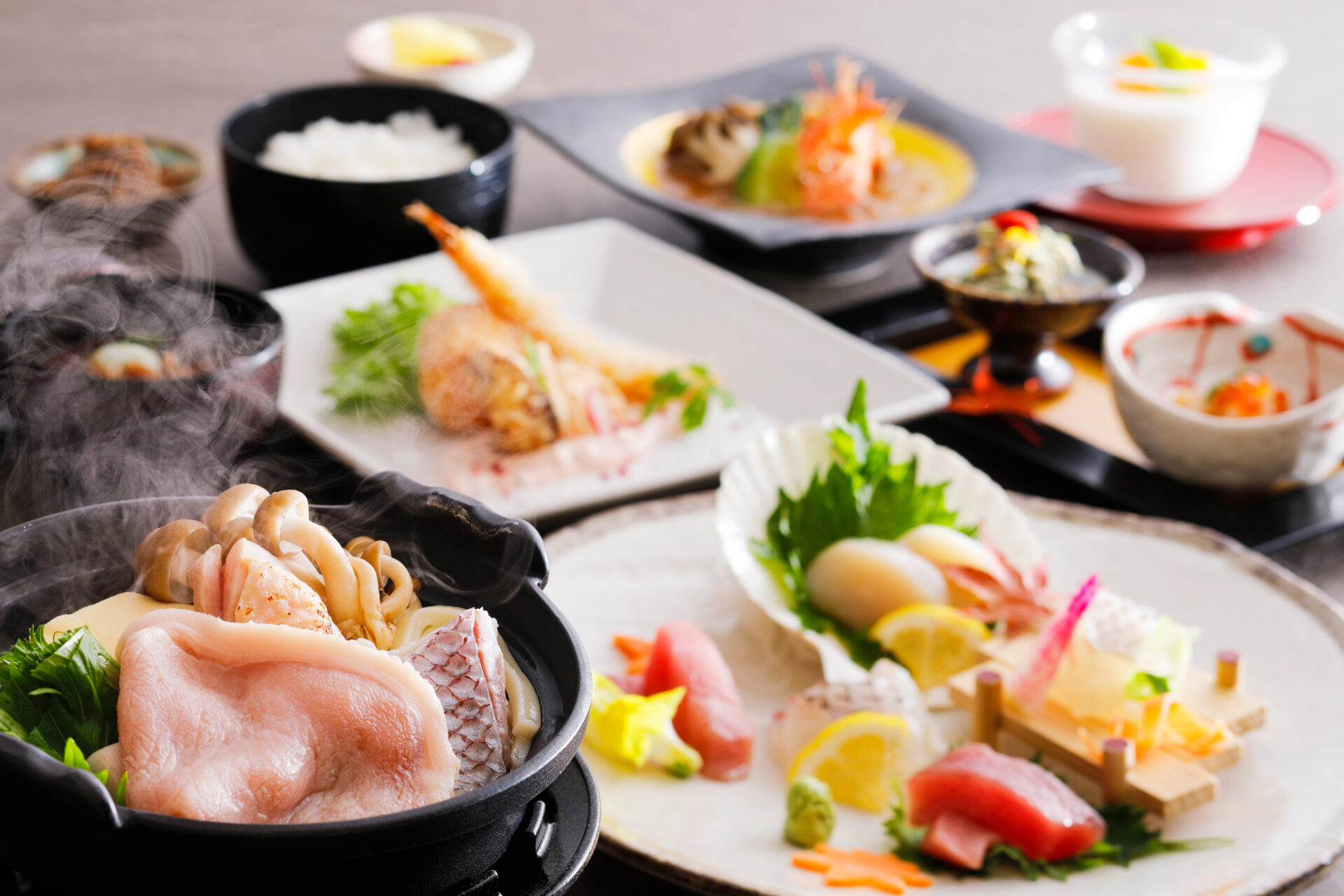 近江牛以外に、刺し身や天ぷら、デザートなどもいただけます。