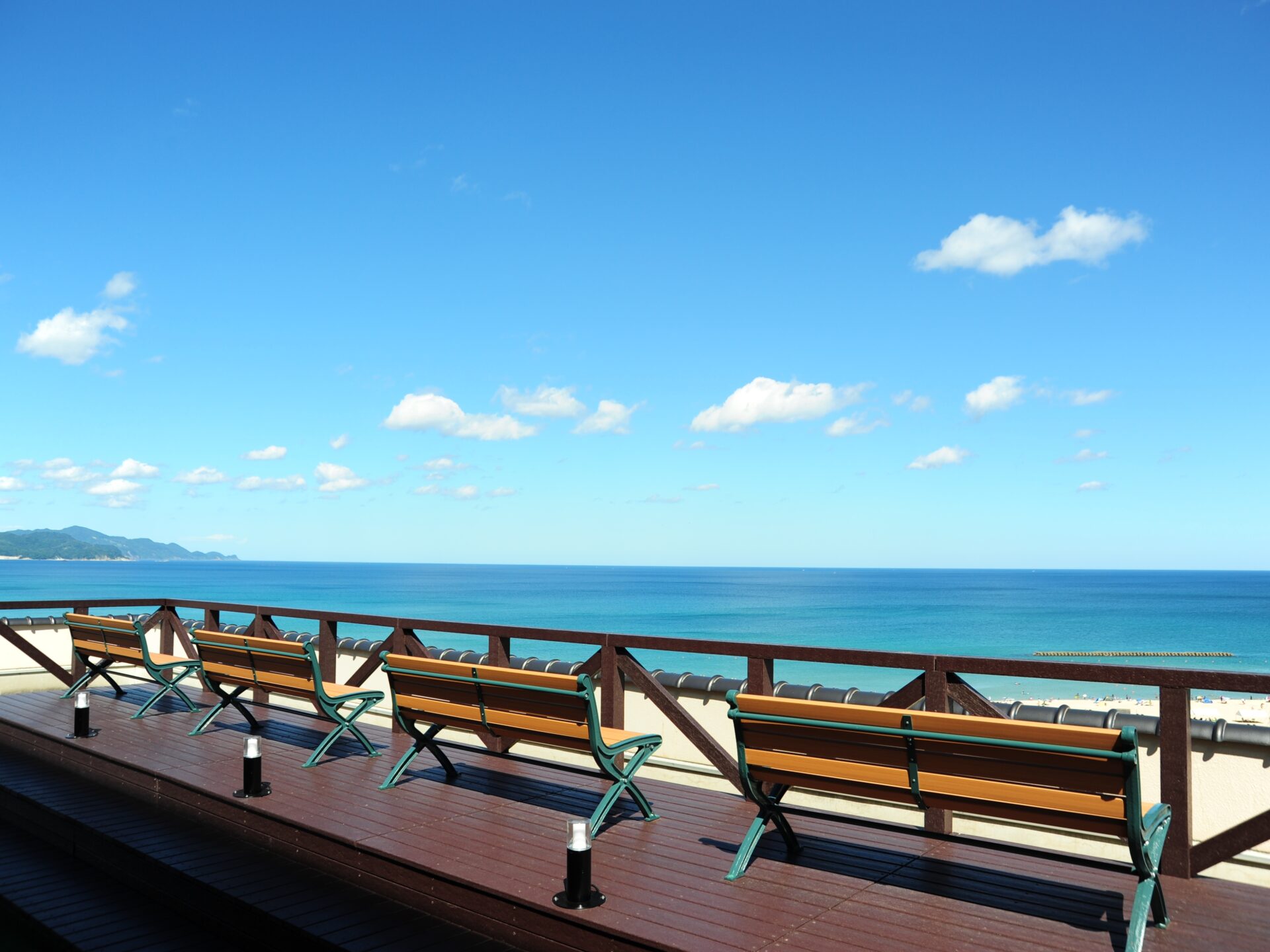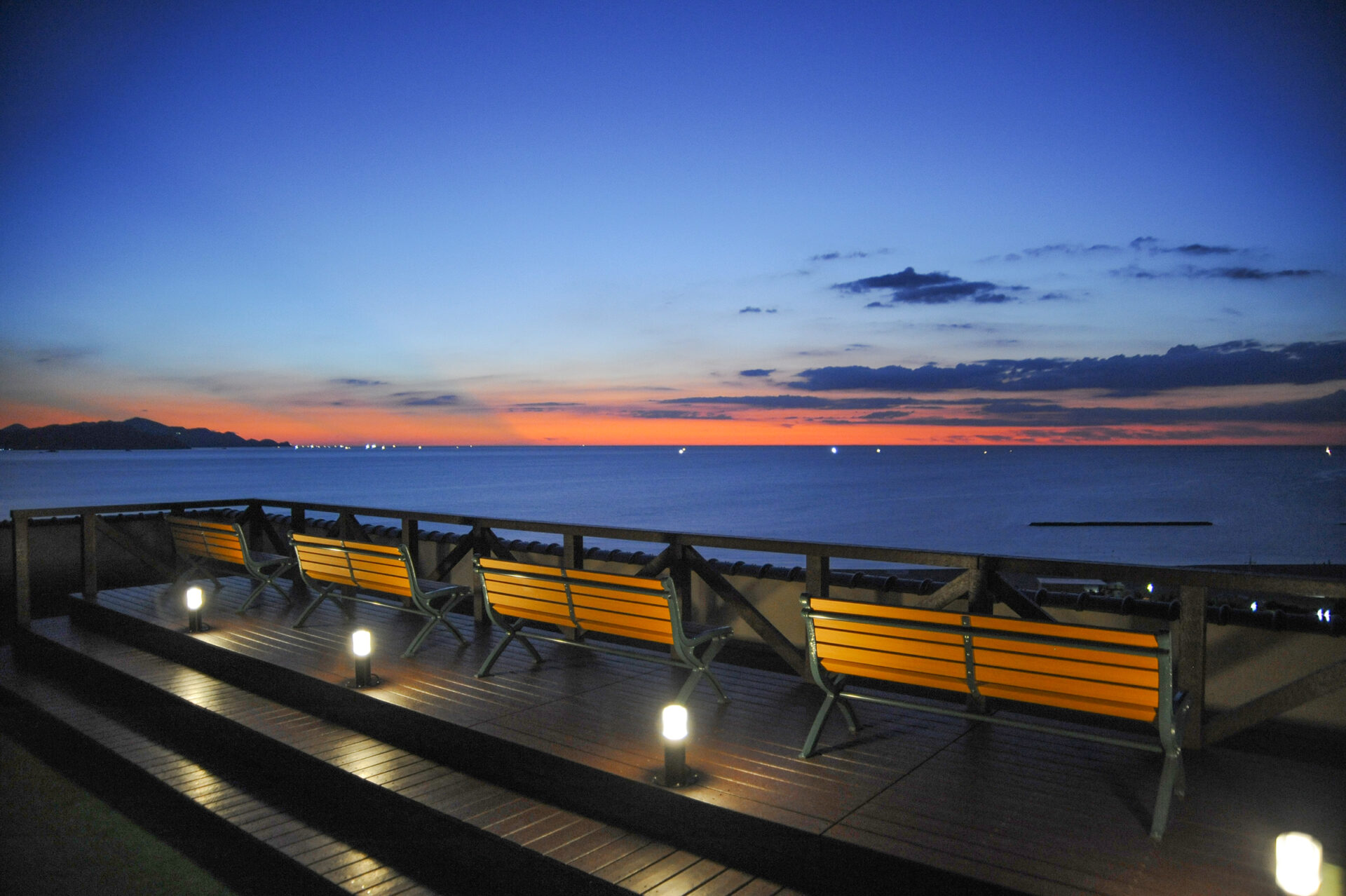 屋上の展望デッキから、夕日ヶ浦の海の移り変わりを心ゆくまで楽しめます。