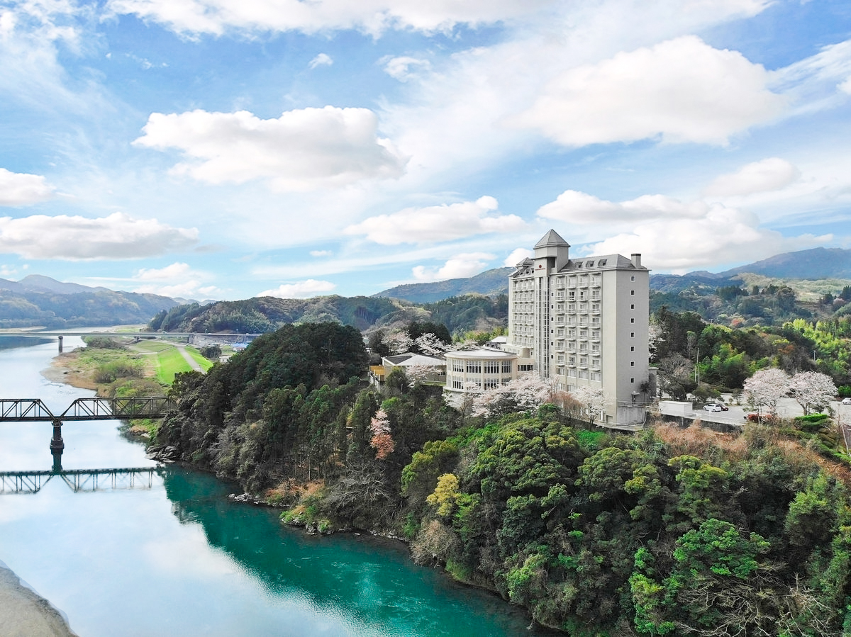 清流・仁淀川が一望できる高台に立つ『亀の井ホテル高知』。