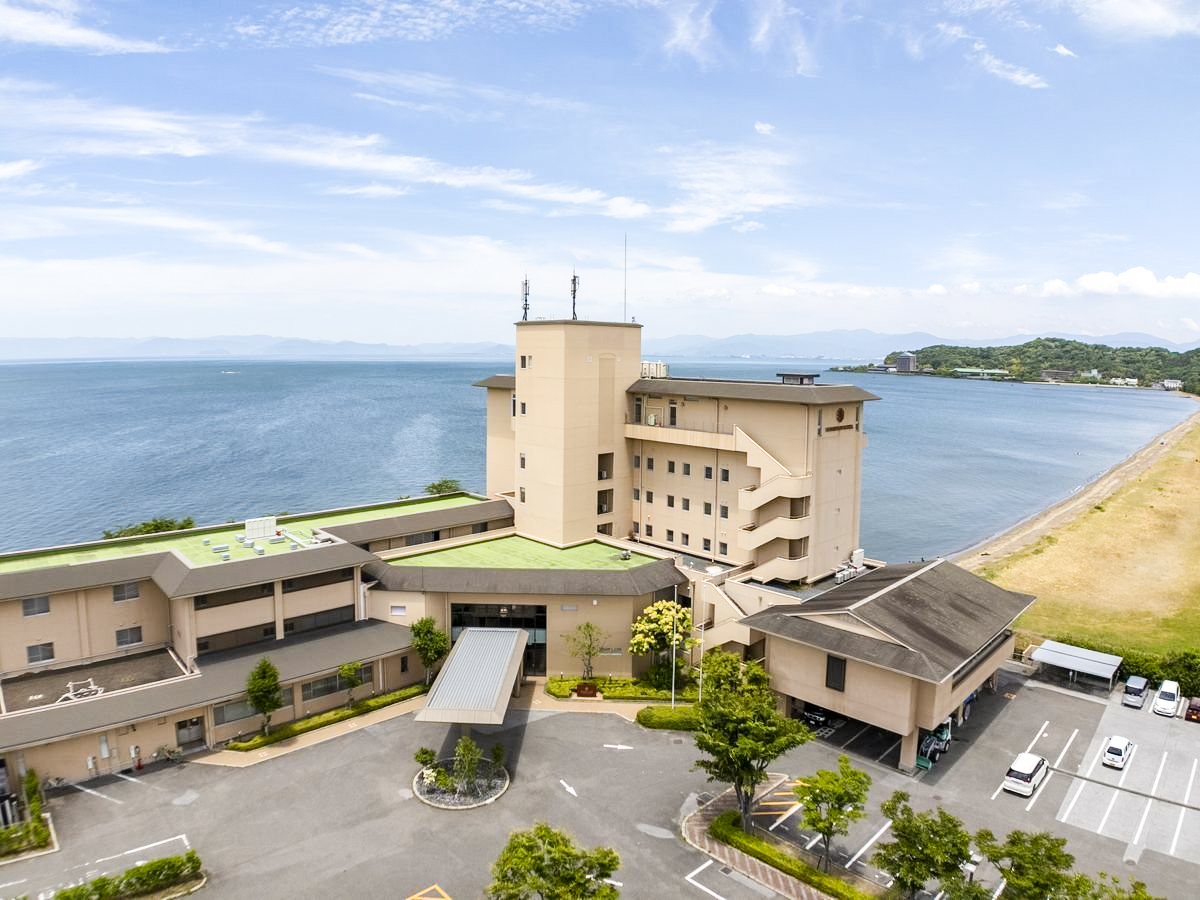 滋賀県彦根市の琵琶湖岸に立ち、客室から湖が一望できる眺めが自慢。