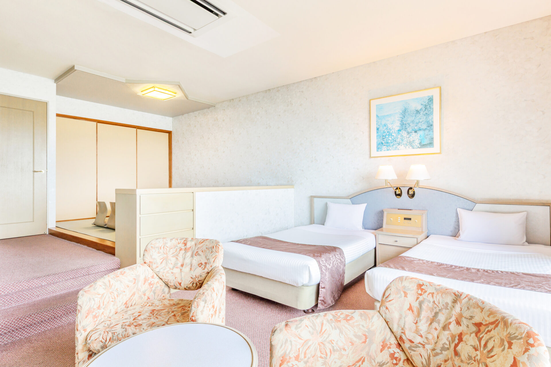よみふぁみ宿泊プランでは、42.8㎡のスタンダード和洋室をご用意。