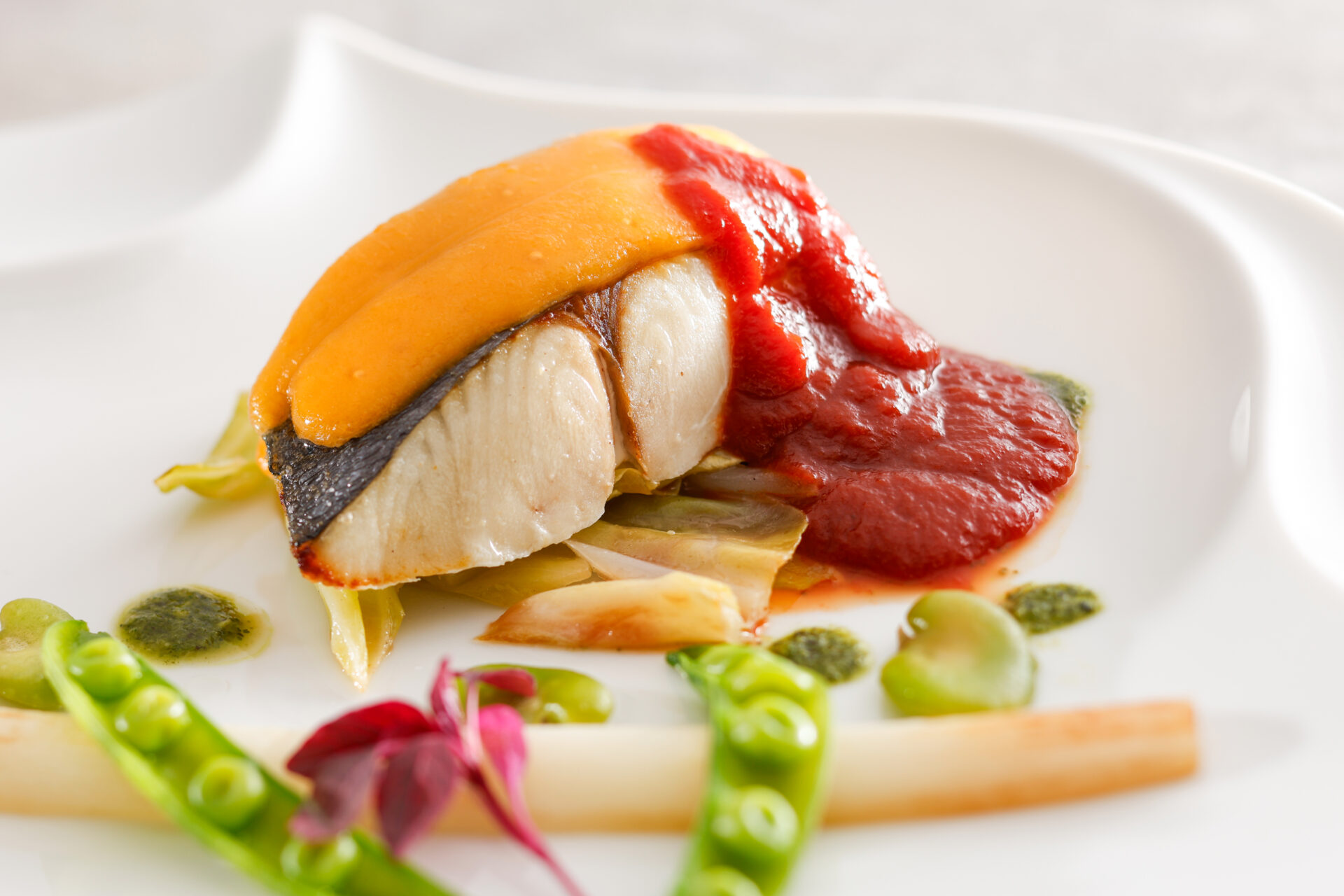 ふっくらと焼き上げた鰆に、 旬の春野菜をあしらった一皿。