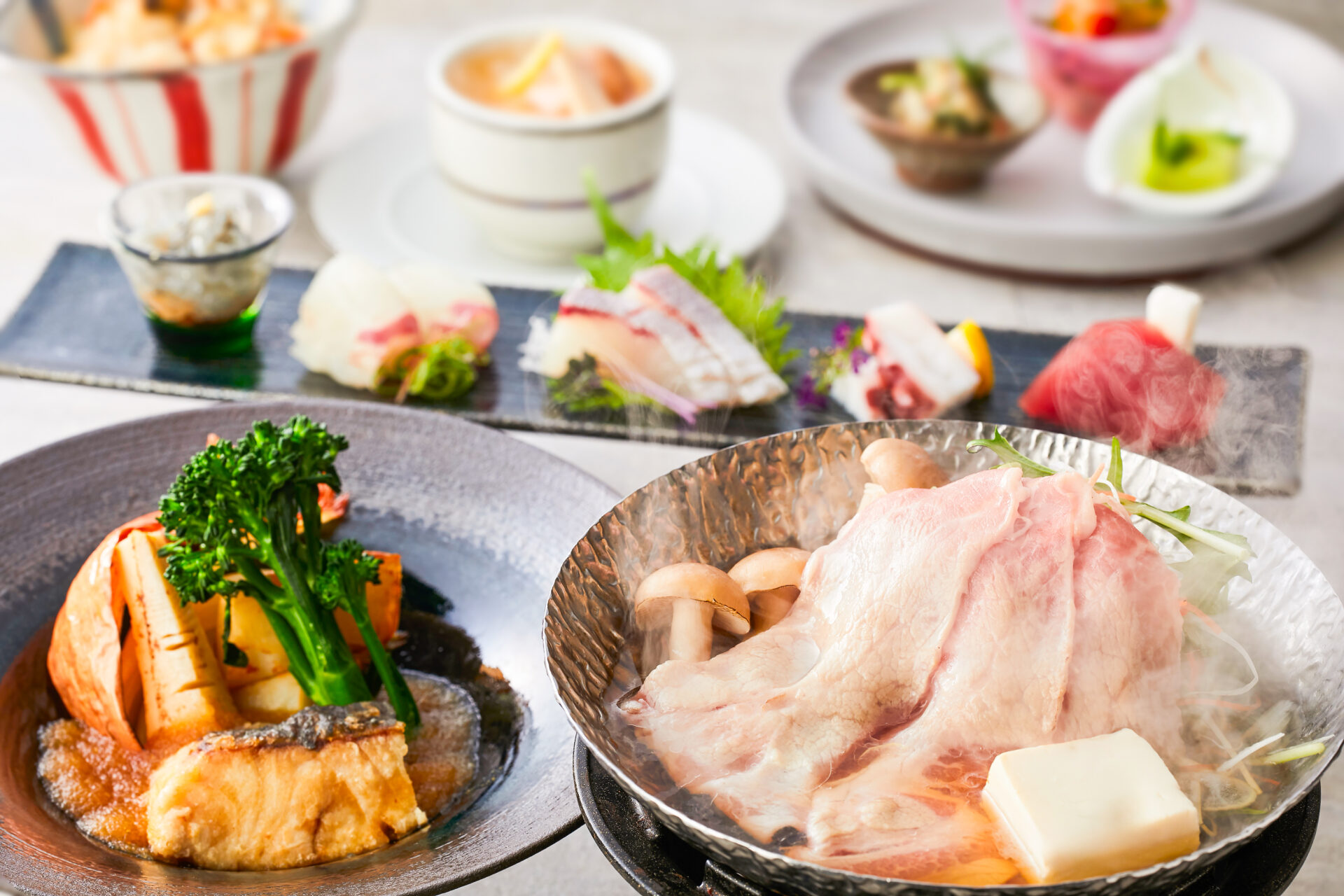 - 【夕食】「瀬戸内海産にべ」「兵庫ポーク」など、美味しいものを少しずついただける会席 ※6月からはメニューを変更します