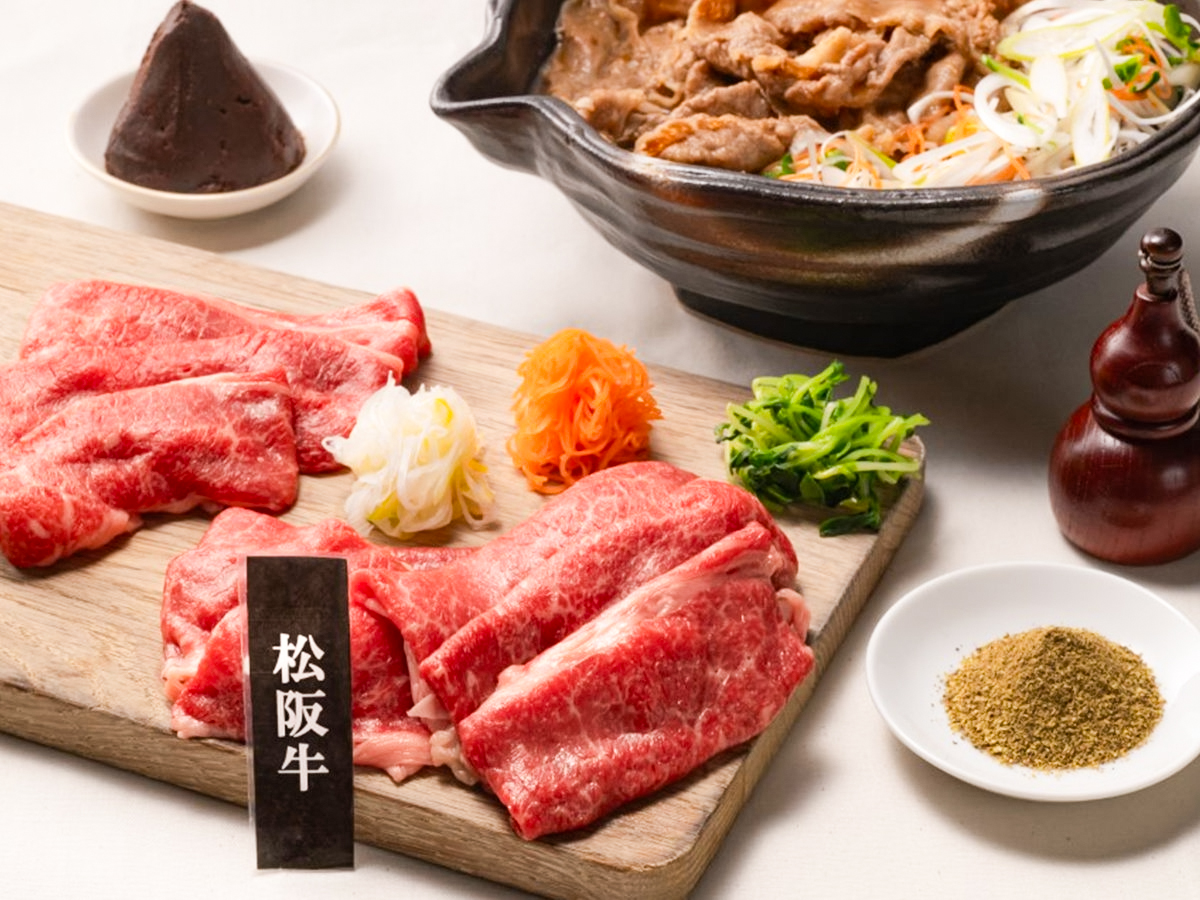 | 松阪牛の伊勢赤味噌仕立ての牛鍋 | 三重ブランド「松阪牛」を伊勢赤味噌で甘く炊き上げた、コク深い味わいに粉山椒の爽やかな刺激がアクセントの牛鍋。 |