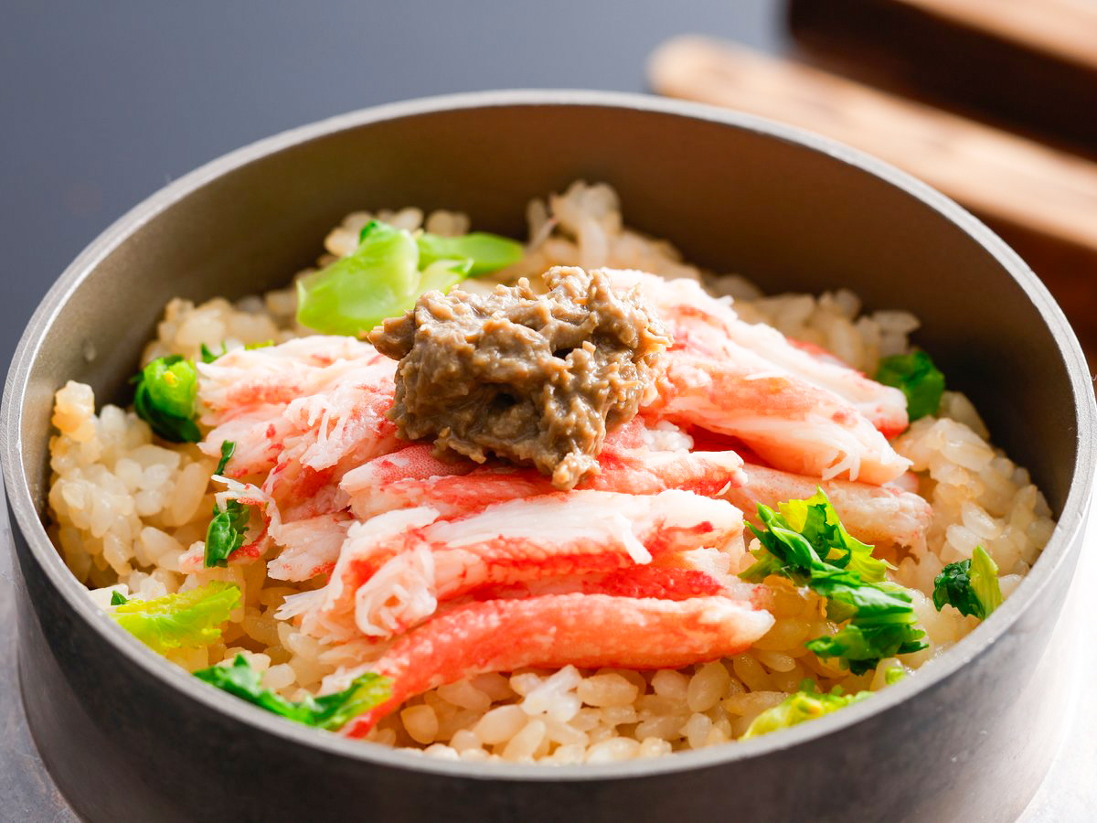 | アツアツカニ身入り釜飯 | ズワイガニのカニ身をふんだんに使用し、自家製のカニだしで炊き上げた釜飯。お好みで濃厚な自家製カニ味噌をからめてお召し上がりください。 |